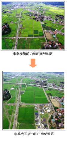 | 事業量 | 区画整理 95.9ha 道路工 1.0式 用排水路工 1.0式 暗渠排水 22.0ha |
