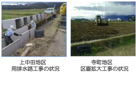 | 事業量 | 区画整理 56.9ha 道路工 1.0式 用排水路工 1.0式 暗渠排水 38.5ha |