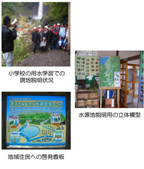 水源地は多くの役割を果たしており、農業用水の安定的確保を図るためにも、その重要性をや現状の課題等を多くの皆様から理解していただくために、農業用水水源地域保全対策事業等で作成されたパンフレットや説明模型等を活用しながら活動しています。